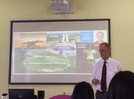 当得知外教将来到课堂,初中部孩子们欣喜不已。他们热情地邀请外教作一次演讲。我们的Duane M.Bates可是物理学博士,他用英语给孩子们讲解了九大行星,回答孩子们提出的各种各样的问题,鼓励孩子们努力学习,将来做一名科学家。Cindy之前一直给老师做培训,这是她第一次跟中国的孩子们交流,孩子们开心极了。我想,对孩子们来说,这将是一堂难以忘记的课。