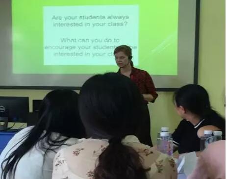 9月11日至9月13日,姜堰区教师发展中心联合“真爱梦想”TIP培训团队,对我区50名小学英语教师进行全外教、全英文、全封闭式培训。培训会上,区教师发展中心黄洁主任作动员讲话,向参训老师阐述了培训的目的:全面提高小学英语教师的综合语言能力、教学能力和自信心。