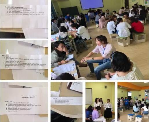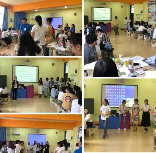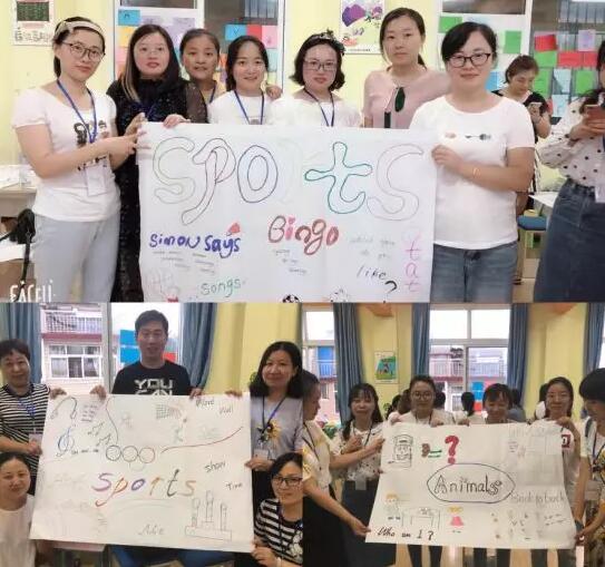 培训活动的展示环节是活动模拟。学员们六人一组,运用三天在TIP所学到的新活动,根据主题对其他学员进行15分钟的授课,要求所用的活动要让所有的学生参与进来,喜欢这个活动,并勇敢地说英语,让他们爱上英语。